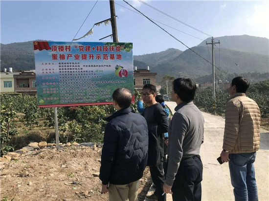 圖3 劉勇同志介紹“黨建+科技扶貧”蜜柚產(chǎn)業(yè)提升示范基地建設(shè)情況